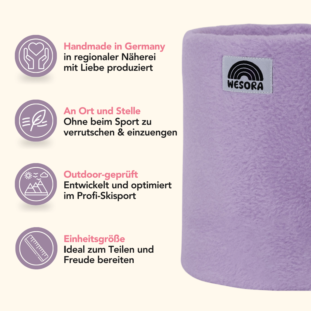 WESORA Dreamy Lilac Uni Neckwarmer in verträumtem Lila, gefertigt aus doppellagigem Polar Fleece